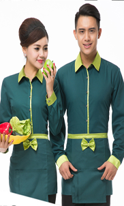 - 快餐店工作服長(zhǎng)袖餐飲網(wǎng)咖制服西餐廳酒店服務(wù)員秋冬裝加圍裙